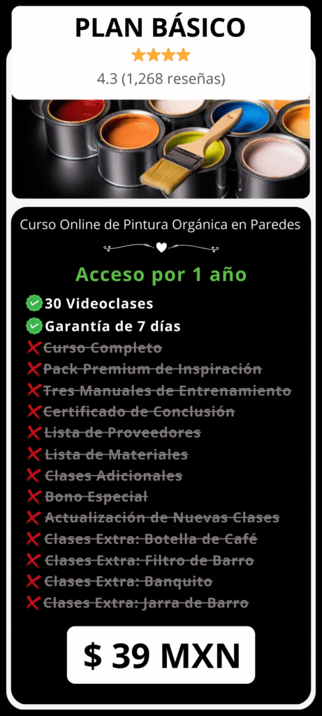 Al inscribirte en el curso de Pintura Orgánica, vas a recibir como bono clases adicionales de pintura en piezas.